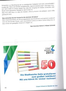 Unsere Festschrift und unser Kalender ist im Sekretariat der Sekundarschule am Schwanenteich und in der Tourist-Information Zeitz am Altmarkt. Sie hat einen Preis von 4,- € pro Stück.